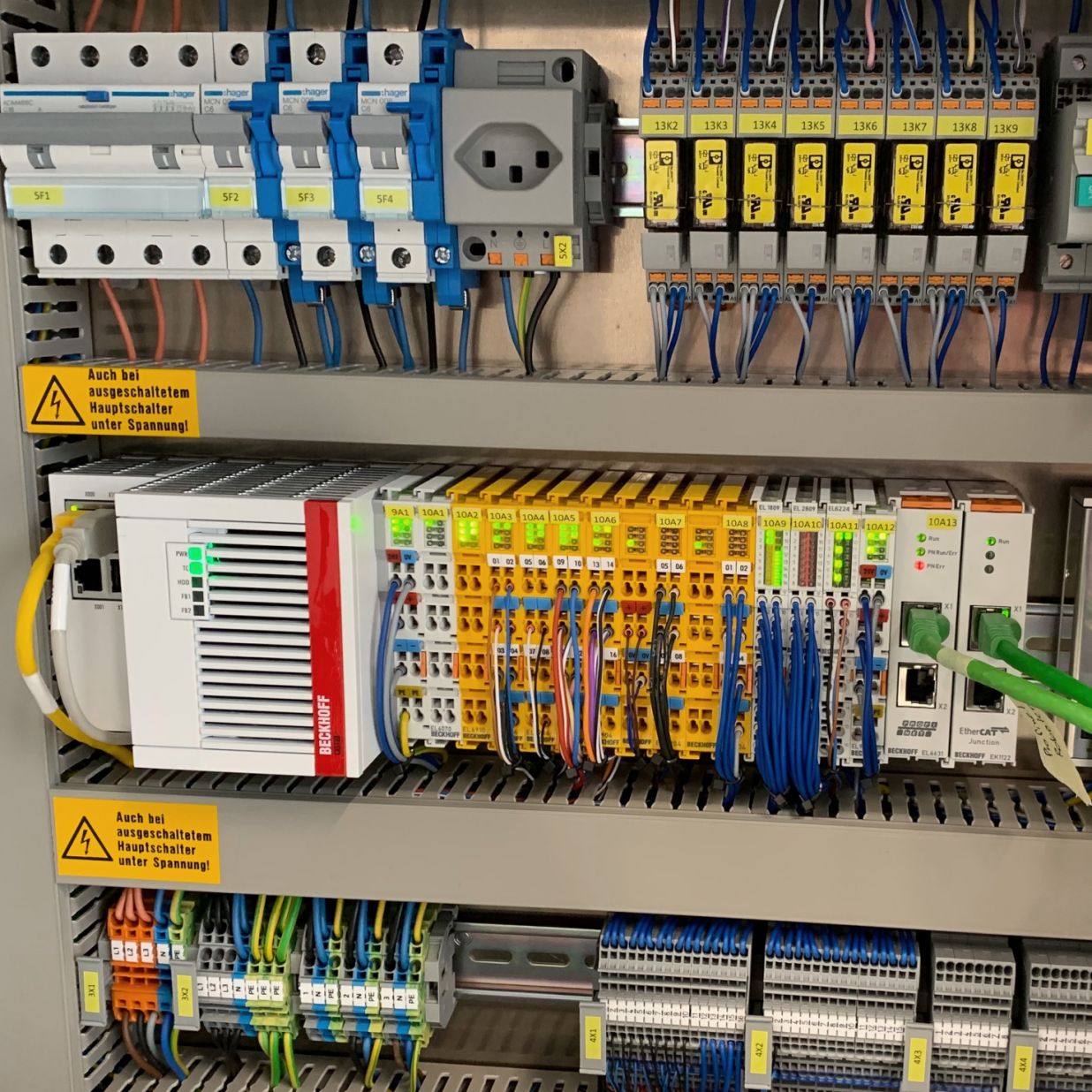 Wir entwickeln SPS-Programme für Beckhoff-Systeme und TwinCAT 3, erstellen klare Visualisierungen (HMI) und setzen die Steuerungssoftware praxisnah in Betrieb. Dabei legen wir Wert auf strukturierte, wartbare Programme und eine schnelle, zuverlässige Inbetriebnahme.